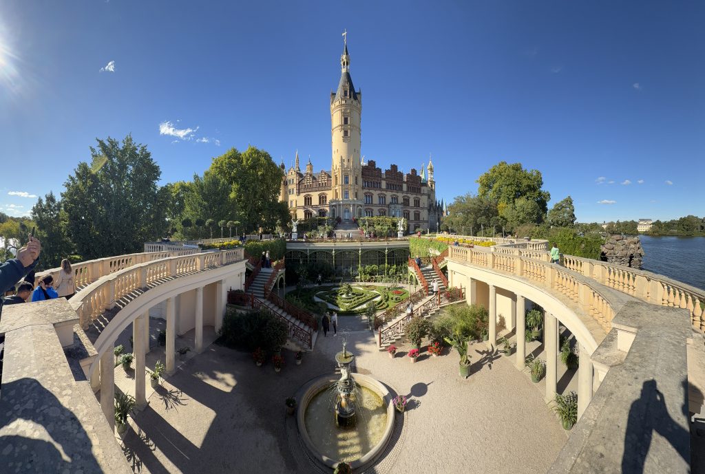 An Tag 11 sollte es Richtung Schwerin gehen. Mit gerade mal ausreichend Sprit im Tank bis zum Ziel haben wir uns über Land- und Bundesstraßen zur Autobahn vorgearbeitet und dann mit bedenklich tiefroter Tankuhr tatsächlich den Parkplatz des Schlosspark-Centers Schwerin erreicht, von wo aus es fußläufig nur knappe zehn Minuten bis zum Schloss war.